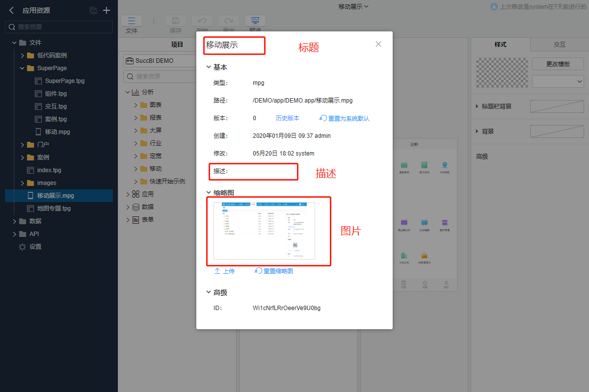 contextPath:部署域名(如:https://example.com)或路径地址(带服务器上下文地址,如https://example.com/BI)。:shareTitle: 用于指定分享出去的图文消息标题,非必选,不传时取资源的名称。需要对有特殊字符的文本进行 URL转义 (opens new window)。:shareDesc: 用于指定分享出去的图文消息描述,非必选,不传时取资源的描述。需要对有特殊字符的文本进行URL转义 (opens new window)。:shareImage: 用于指定分享出去的图文消息中的图片,非必选。- 不传时取资源的缩略图,若缩略图也不存在则会取系统公共目录(对应元数据目录为/sysdata/public,可通过访问{contextpath}/public/xxx获取内容,并且不需要权限)中下名为 `{资源类型}-wxshare-image.png 的图片作为默认图片。