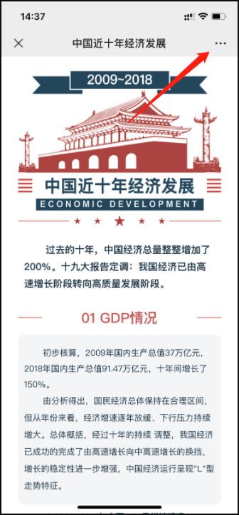 - 在微信浏览器中打开该链接,可以先将链接发给手机微信,然后再微信中点击打开,然后点击微信浏览器上右上角的功能按钮,示例参考:
