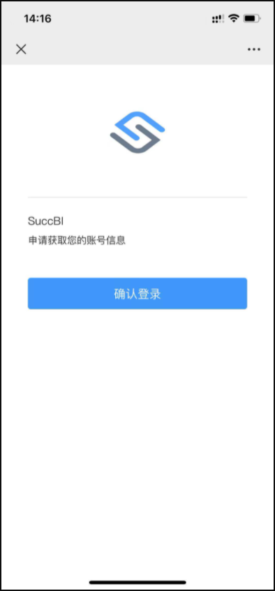这个界面是微信内置的授权界面,若是微信用户选择了授权SuccBI使用微信身份登录,将会跳转到授权PC登录的提示界面。