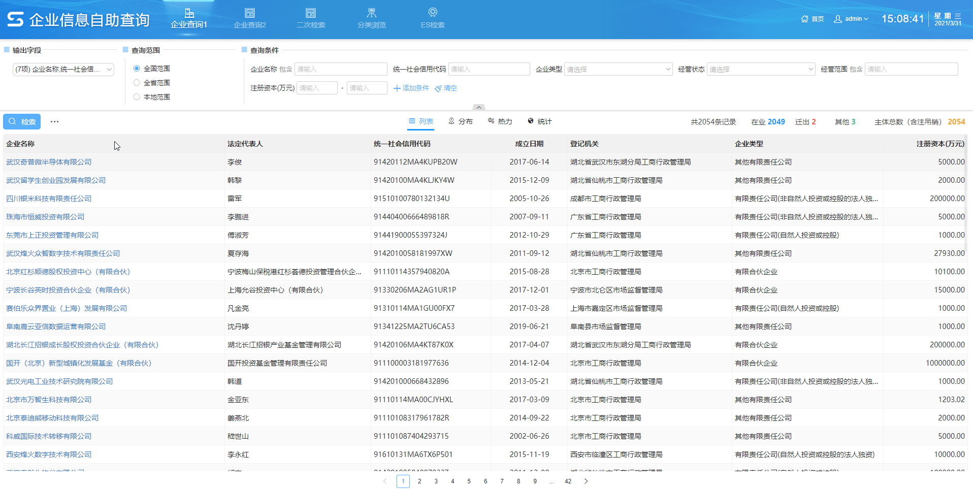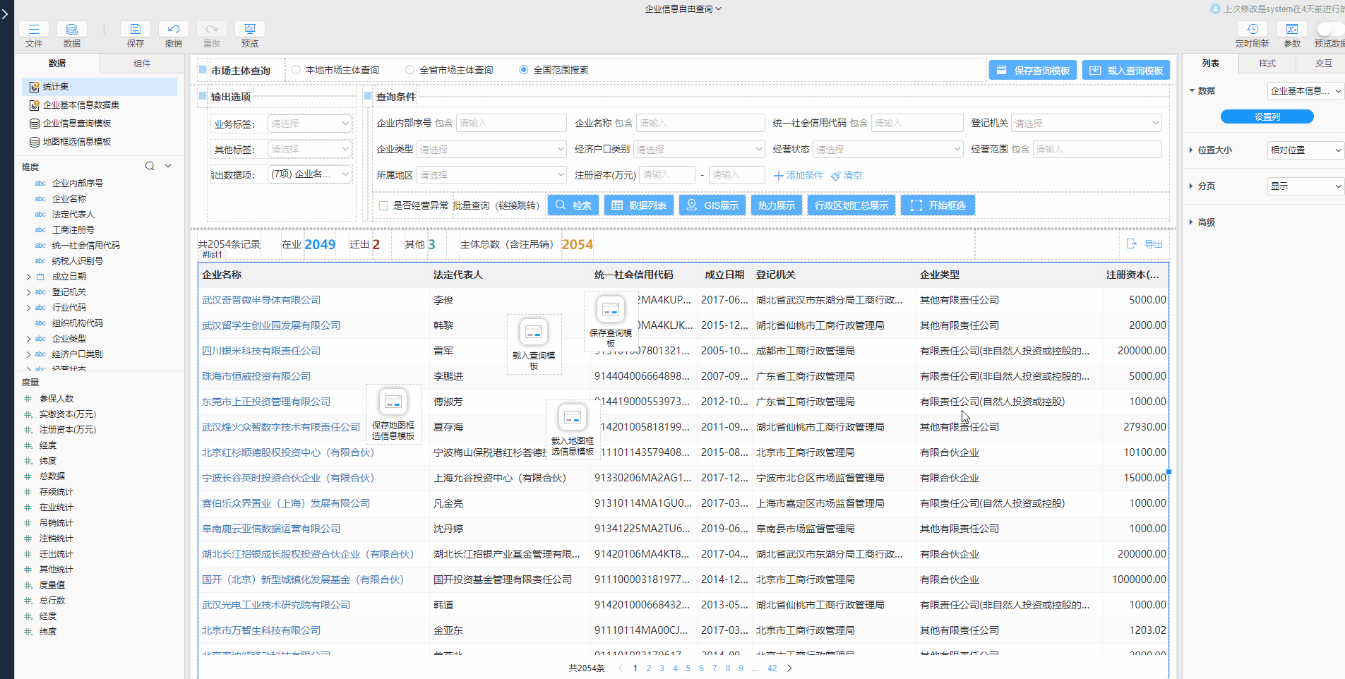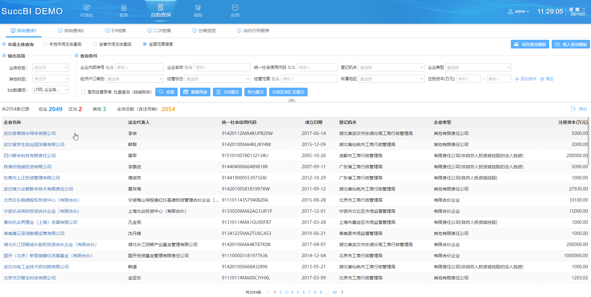 打开链接交互用于跳转到其他对象,支持系统内部对象及外部链接,可以以弹出对话框或页面的方式展示。如列表展示各企业信息,点击企业名称查看企业详情: